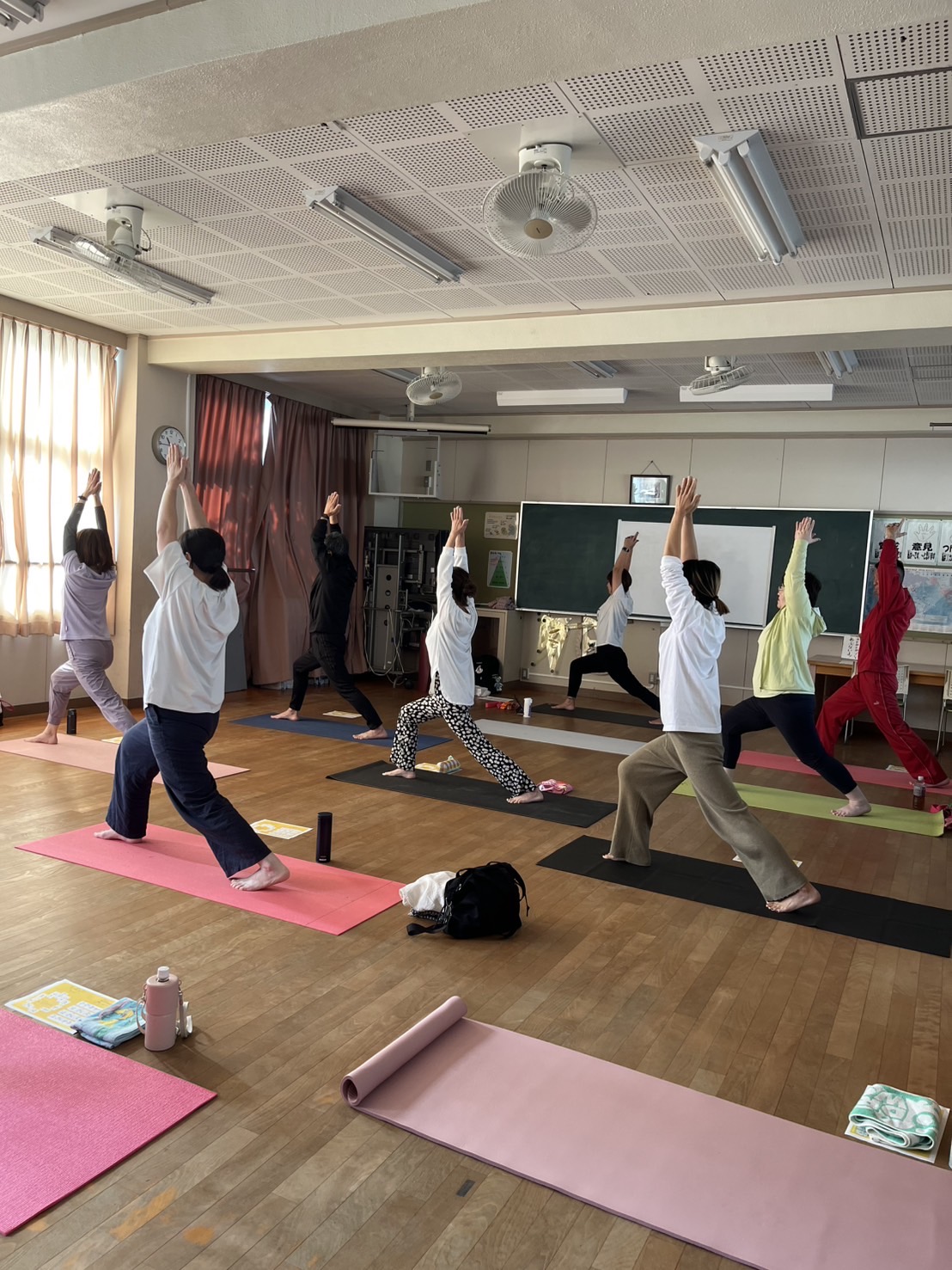 2025小学校PTA講座 ヨガ教室 2025年10月28日 今日は、地元の小学校で、PTA講座としてヨガ教室の講師に行ってきました。顔なじみのお母さん方に混じって、校長先生たちも参加してくださいました。